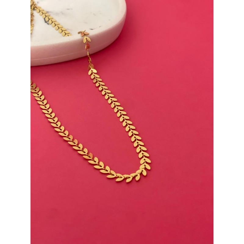 Collana essential in acciaio inossidabile dorata con fantasia a foglie.